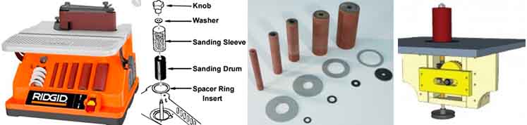 RidgidEB4424/44240/44241除4x24"砂带外有3/4,1,1.5,2吋(高4-1/2吋)空心胶辊。刚收了一个40旧的但只有砂带,单套胶辊30刀,不过1/2砂套是不用胶辊的。该机前后存放零部件,前右为砂辊,左银色片为配用圆环垫,后存有台面垫片[