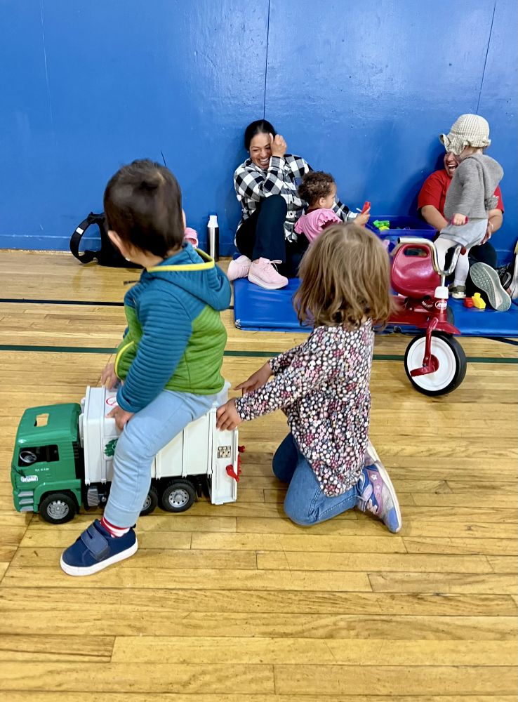 照片1:早餐后,宝宝与外公去社区活动中心玩耍,绝大多数小朋友们是由保姆带着去玩。