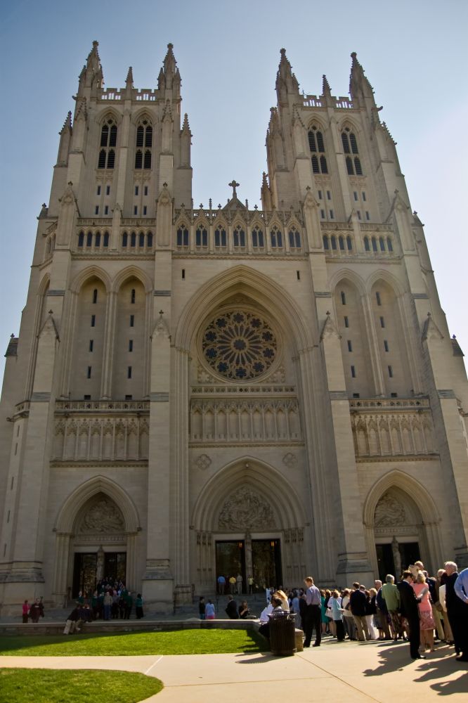 清晨,我们先去国家大教堂。它座落在华盛顿西北,离NationalMall较远,又不通地铁,所以游客很少。但因为今天复活节这个特殊的日子,来做礼拜的人早早地就在教堂门口排起了长长的队伍。人人盛装打扮,手里举着不[