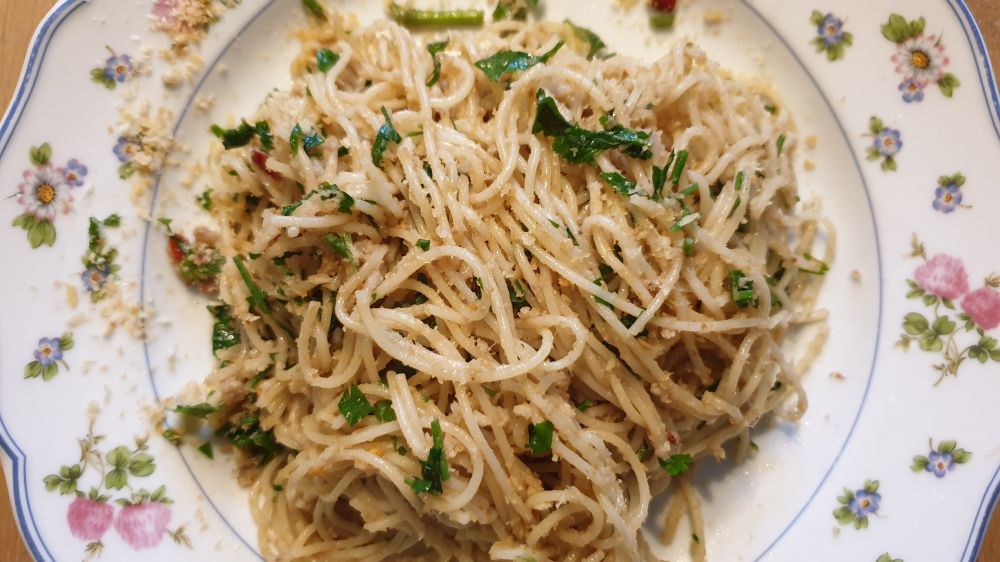 有一年圣诞期间去西西里度假,由于飞机晚点,到达卡塔尼亚时定好的b&b已经没有人给我们开门了。半夜十一点多,临时找了一个不起眼的酒店。本来想赶快入住睡下就算了,可是热情的店主问我们要不要吃点儿东西。正好肚子饿了,就到酒店附属的餐厅饱餐了一顿。意大利人的晚餐真是晚,都半夜了,餐馆里面人还是很多。当时就吃了这道意粉。由于我以前做过一道类似[