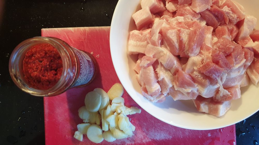 第一次听说光饼是85年第一次去福州听我爸回忆他的童年。早上得到一个铜板,可以买光饼夹炸海蛎。后来见到叔叔姑姑们才知道那是他做为长子的特权。弟弟妹妹们都是在家吃早餐。首先做红糟肉,红糟是用红曲米酿酒后的残渣,有些酸,烹调的时候要加些糖。五花肉用水煮一下,出血沫后把肉捞出来清洗,把过洗净后,把肉放回去,加水慢煮。五花肉会慢慢出油,出油[