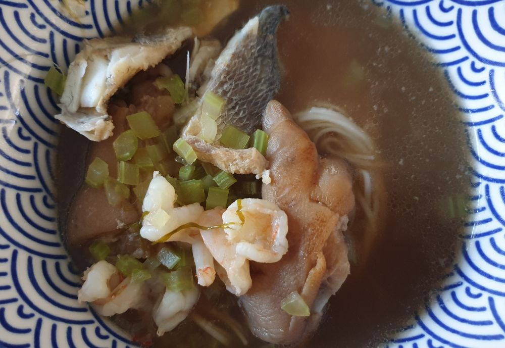 食材:黄鱼鲞一条、猪蹄两只、虾仁、啤酒、葱、姜、芹菜。猪蹄洗干净,焯水5~10分钟后用清水冲干净备用。黄鱼鲞洗干净,特别注意摘掉鱼腹上两块颜色稍微深一点的鱼肉(这两块鱼肉腥气比较重),然后把鱼肉切成寸段备用。另外起锅,煮开水以后,放入姜片,葱段和猪手,然后倒入两瓶小啤酒炖1.5个小时后加入黄鱼鲞煮15分钟,放入虾仁和芹菜碎煮开加盐调味即可,也可[