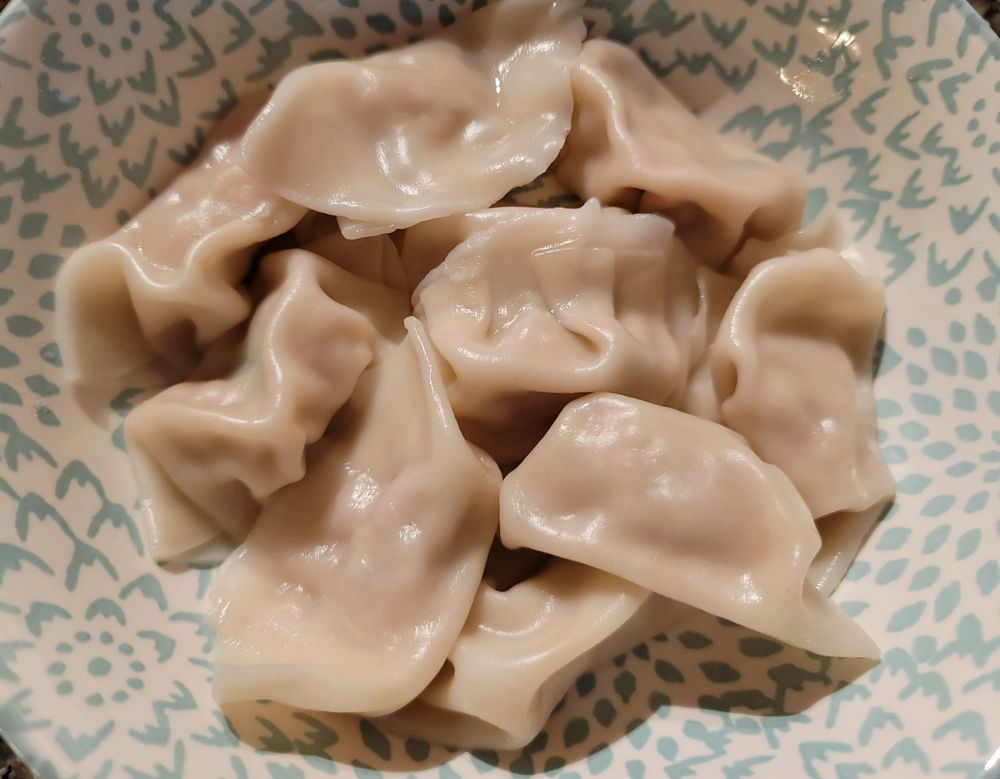 又是一个星期一,阳光灿烂,天气还挺暖和的,公园里的小树居然开花了,像春天一样,还来了蜜蜂,真是第一回发现。气候可能不正常吧,蜜蜂冬天在哪里猫冬?这个时候怎么就出来了,说因为有花儿它就行动了吗?我说过,我一偷懒就做饺子,显摆了好几次我的电饼档了,看到冰箱里有饺子皮,想着还有馅就包了饺子,省事,也挺好吃的,比做馅饼简单,主要我家煮饺子[
