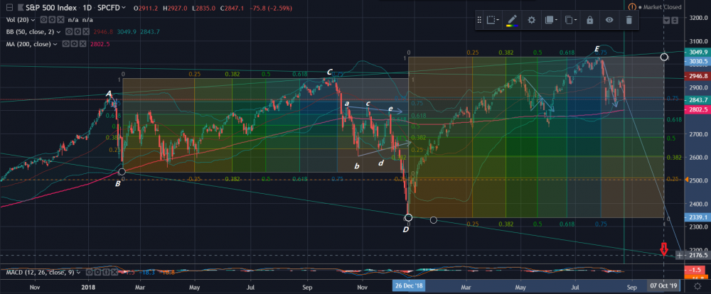 那么回到去年圣诞节前,2346.6也很正常。可再往下降,2300,2200,没几个人认为是可能的,SPX降了800多点,怎么可能?可是下边这个图告诉你不但[