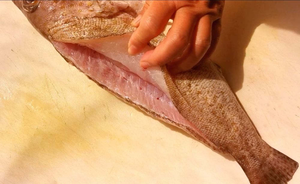 一条850克石斑鱼剔除两侧鱼肉后,鱼骨、鱼头切大块,豆腐干200克
