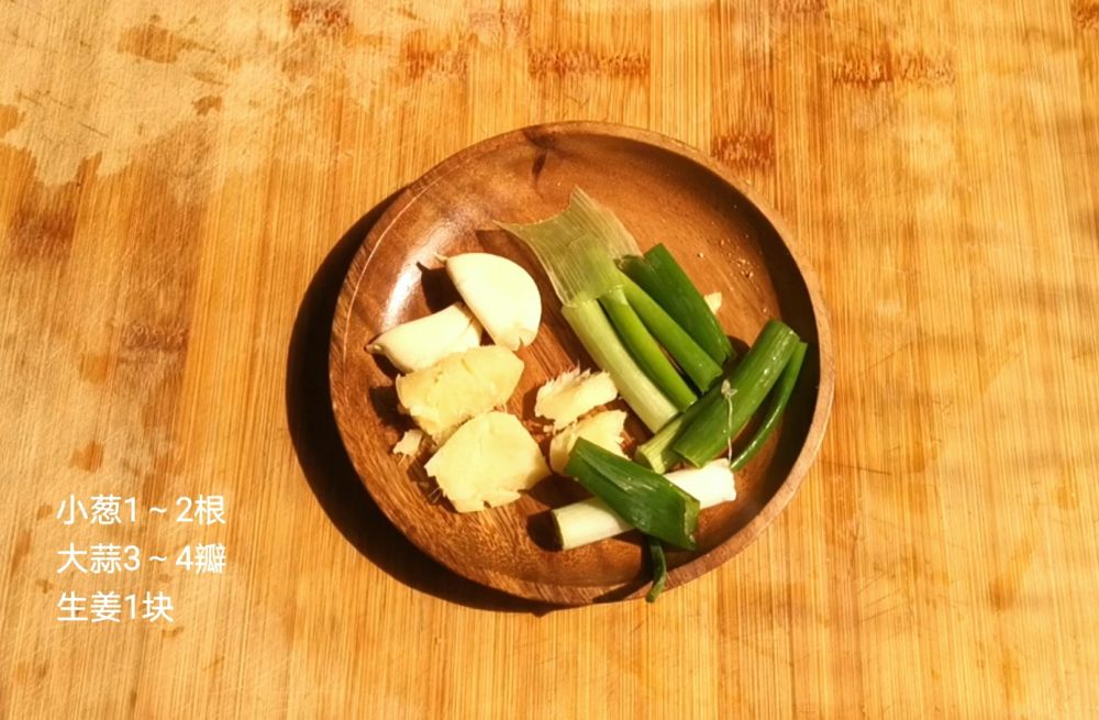 生姜一块,小葱一根,豆豉20~30克,大蒜一头