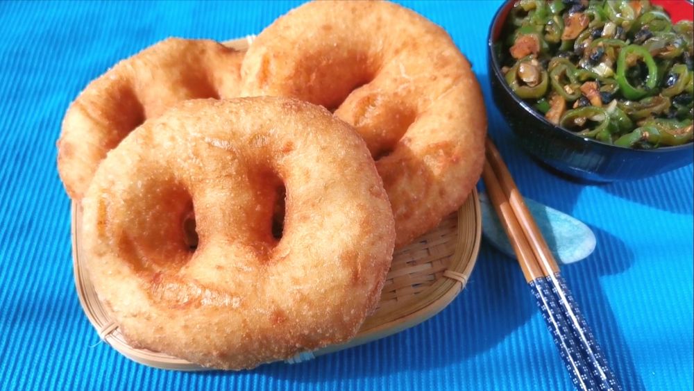 家常炸油饼,不放泡打粉照样蓬松萱软,就着好吃的豆豉青椒,再来一碗热气腾腾的小米粥,满满的家乡味道!爱的就是这一口。