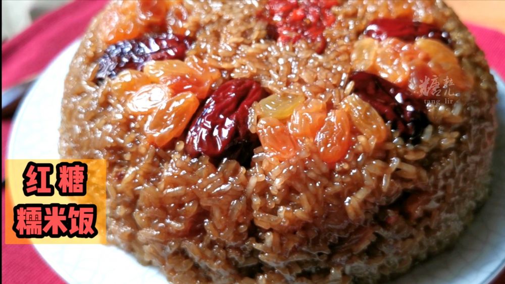 红糖糯米饭,甜而不腻,口感软糯香甜,透着红枣和葡萄干独特的味道,喜庆的深红色很适合做年菜,关键是做法超简单!推荐给大家。