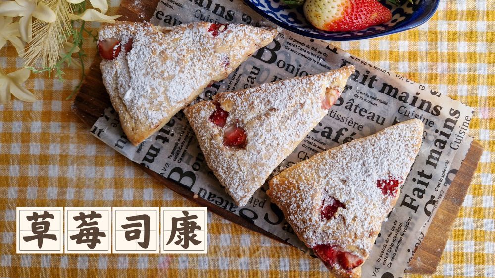 夏天来了,新鲜草莓就要大量上市了,快试试这个好吃的[草莓司康松饼],口感松软透着草莓香,配上一杯咖啡或者红茶,让你的下午茶顿时锦上添花!