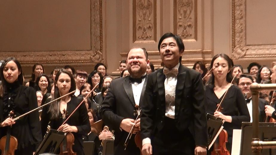 著名80後指揮家易傑帶領卡內基音樂廳臺上全體演員謝幕
