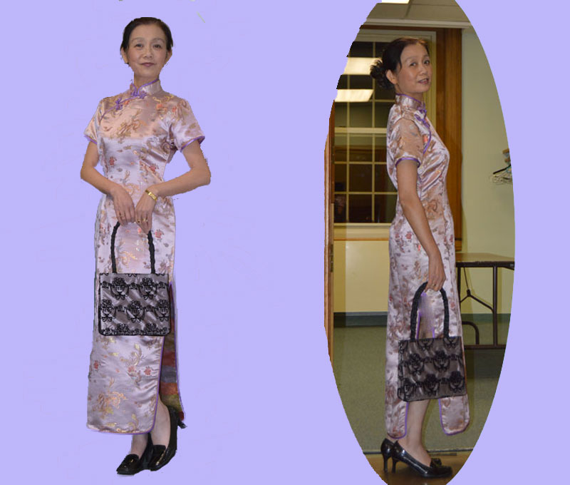 我有几件旗袍,但多是丝绸质地的,平时没有什么机会穿。只有演出时偶尔穿穿。很高兴流坛版主的好活动给我个机会来秀秀俺的旗袍:)