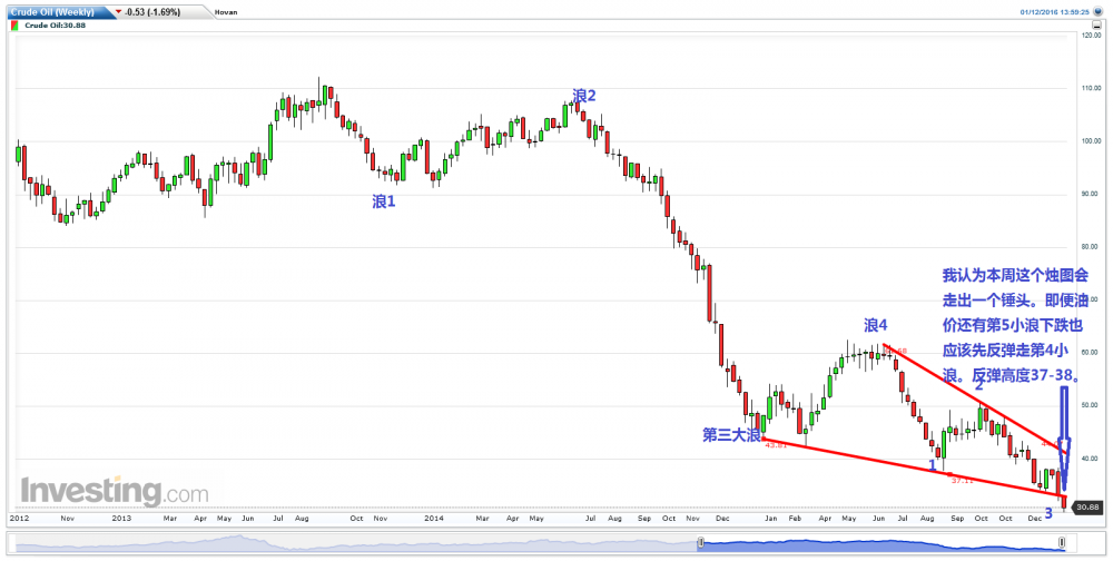 油价今天瞬间跌破30大关,不过从图上看,目前的位置对于空头而言已经是强弩之末,反弹一触即发。