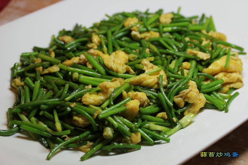 做法:炒锅内放油,中火,加入蛋液炒成块,拿出。锅内放油,加入蒜苔炒炒炒,炒熟之后加蛋块,加酱油水淀粉,翻炒几下出锅,配搭大米饭绝顶。