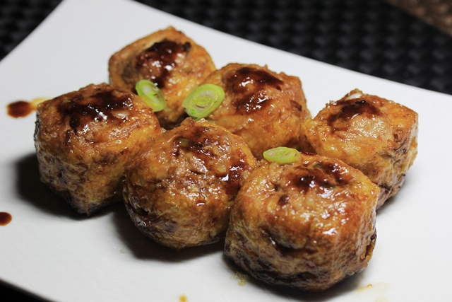 做法:把猪肉馅加姜末葱末料酒盐酱油花椒面油一个方向调匀,把油豆腐一面用小刀划十字,把肉馅塞进去,锅内放油,把油豆腐码在锅内加水和酱油花椒面等,盖上盖子中火焖到汁干。加上蒜末出锅,哇,蒜[