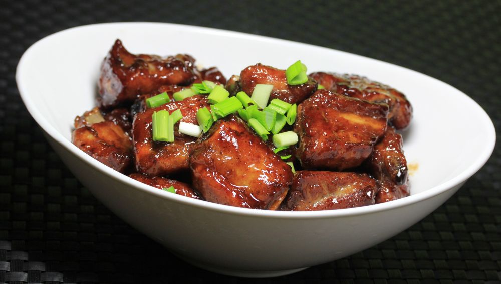 食材:1磅半排骨,油,姜粉,花椒粉,淀粉,盐,料酒,酱油,白醋,糖,一块大料,5勺水,蒜苗。