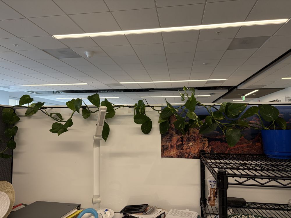 由于它不断长长,我想把它固定在cubicle墙上,很不容易。买了粘在墙上的钩子,用了胶带等等都不行,总是从墙上掉下来。它越长[