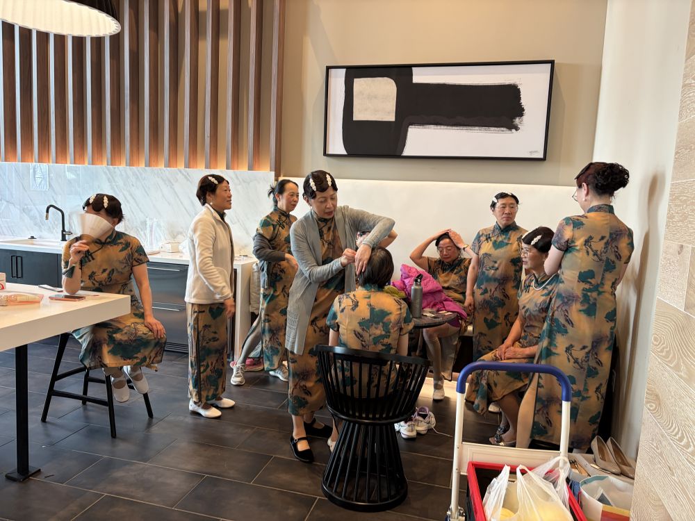 和朋友们在一起的时光就是快乐,可以暂时不做家务,烦心的事可以不去想,哈哈。今天跳的大妈集体舞是旗袍美人,大家穿着旗袍和舞鞋,还戴了假发,戴上假发我们看起来说好听是像民国美女,说难听了像媒婆,我觉得更像媒婆。另外我表演了太极功夫扇,动作还没有完全记住。唱:当然是京剧,我们领导的意见是不能站在干唱,要加上身段儿。我其实就是喜欢唱,现在[