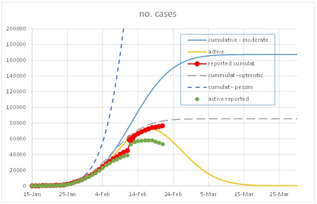 更新一下2月16号以后的数据。根据国家卫健委所报数字,疫情基本是按照模型之乐观趋势发展。