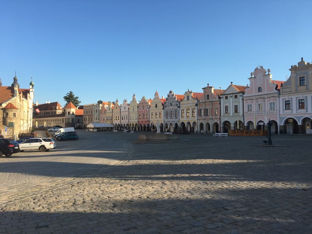 捷克有众多迷人的小镇,躲过了一次又一次的战火,如珍珠般星罗棋布洒在她袖珍的版图上。多姿多彩的泰尔奇(Telc),便是这些珍珠中被雕琢得最精致繁复的一颗。做功课的时候无意中被一张照片吸引,画面中两排色彩绚丽的文艺复兴式建筑,一排在地面一排在水中,映衬着湛蓝色的天空,雪白的浮云,是那么的美丽。查一查,原来这个地方叫做泰尔奇,捷克语为Telc,是联合[