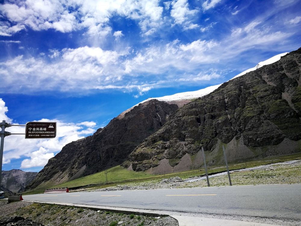 我们告别羊卓雍错,前往卡若拉,一路上海拔7200多米的宁金岗桑峰一直在车前方为我们指路,洁白的雪峰不时跳进我们的眼帘。宁金岗桑峰是拉轨岗日山的主峰,周围耸立着10余座6000米以上的山峰,是后藏地区最重要的神山,藏传佛教四大山神之一的西方山神诺吉康娃桑布的居住地。宁金岗桑峰山体雄伟,危岩嵯峨,顶部尖锥突兀,形如鹰嘴。坡岭沟壑间的终年积雪发育了[