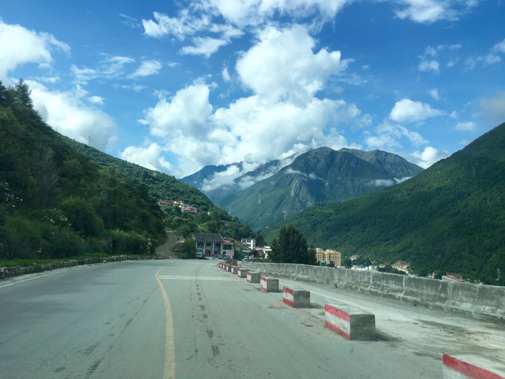 我们由于道路封闭,只能放弃前往丹巴,从八美打转回到康定,然后开往泸定。汽车沿着山路向下,路上遇到几个骑车人,看穿着打扮不知他们是否就是早晨看到的顶着风雨上坡的骑行者。回程路上发生了一个小插曲:上午还在新都桥时,裴师傅就找加油站加油,可是加油站没有97号汽油,裴师傅不敢擅自加低档汽油,后来又经过几个加油站也都没有97号汽油。回程到达折多[