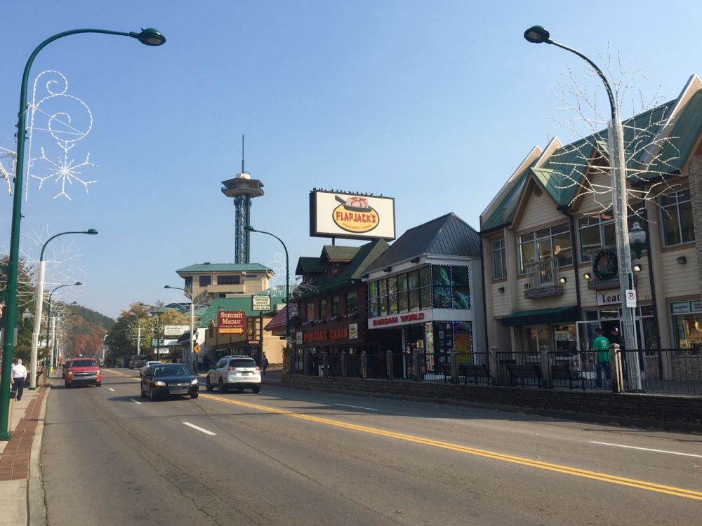 Gatlinburg小镇是大烟山在田纳西这边的门户,我们沿着highway441穿过公园,今晚就下榻在这里。这是一个典型的旅游小镇,有平行的两条主干道,一条是商业街,商店、餐馆集中在这里,另一条是住宿街,各类旅馆鳞次栉比,两条主道由小街相连。街道两边的灯杆上挂满了霓虹灯,除了餐馆、商店外这里还有许多孩子玩的各种游乐场、博物馆、以及5D电影院,很适合家[