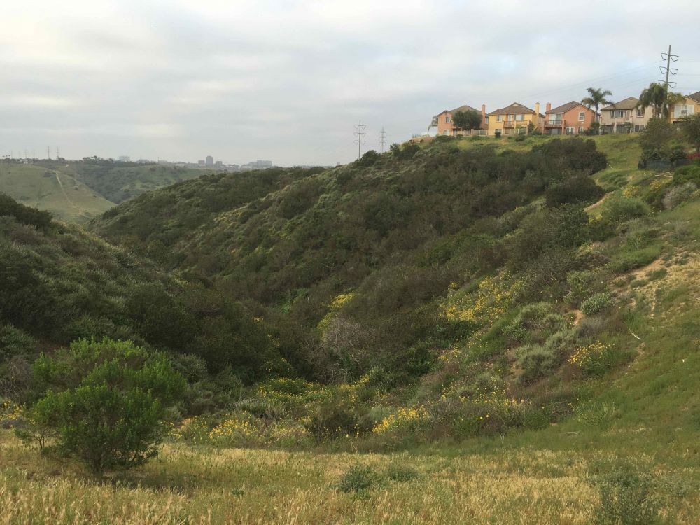 上周行走TorreyPine时就和朋友约好,今天我们行走LosPenasquitoPreserve,目的地是步道中的Waterfall。清晨我们出发了,行程从山顶开始。眼前的视野开阔,山谷间悄无一人,空旷苍茫,山坡上一片郁郁葱葱、山花烂漫。我们行走在步道上,耳旁不时听到小鸟叽叽喳喳的唱歌声,为原本静悄悄的山林增加许多乐趣。走下山谷,经过一片绿绿的野麦田,清风从山间吹过,麦穗儿随着微风[