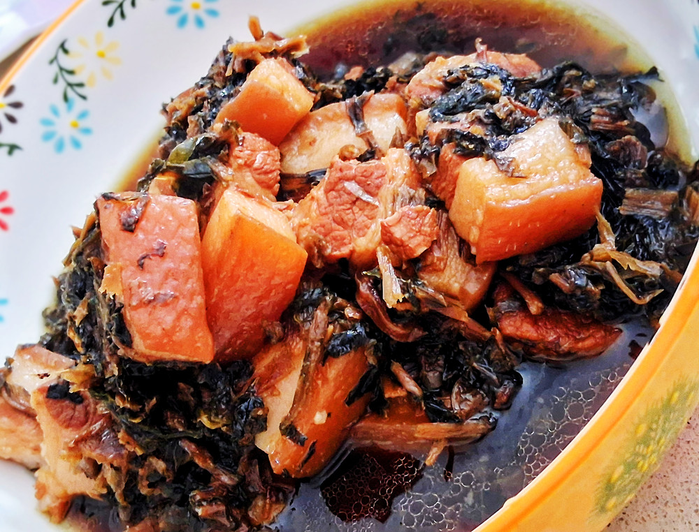 那个时候做这道菜,梅干菜多,肉少,吃到最后,剩下的都是梅干菜,但即使是这样[