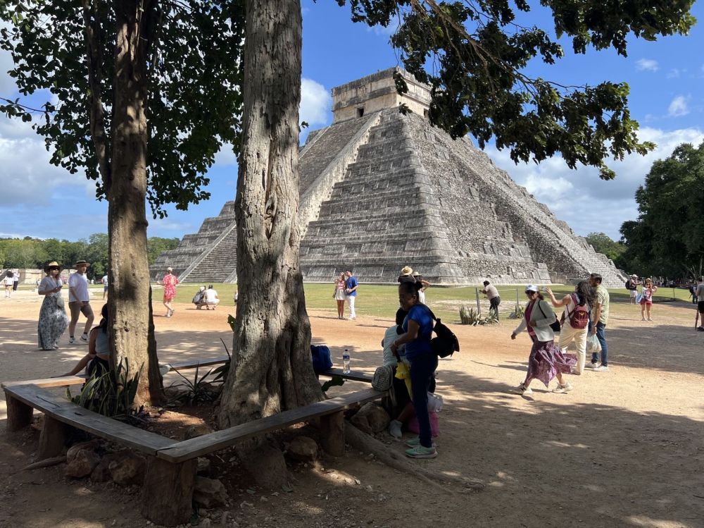 我们从墨西哥坎昆乘大巴一路向西,大约要两个半小时才能到达奇琴伊察(ChichénItzá)。那里是著名的玛雅文化遗址,即玛雅金字塔,也被称为世界七大奇迹之一。对于我来说还学到或发现了些新东西,这是几千年前,亚洲先民在美洲大陆构建的宏伟建筑。ChichénItzá地处玛雅的一个城邦,方圆所有的长宽都是2-3公里,我们只是看到了它的一部分。Chichén[