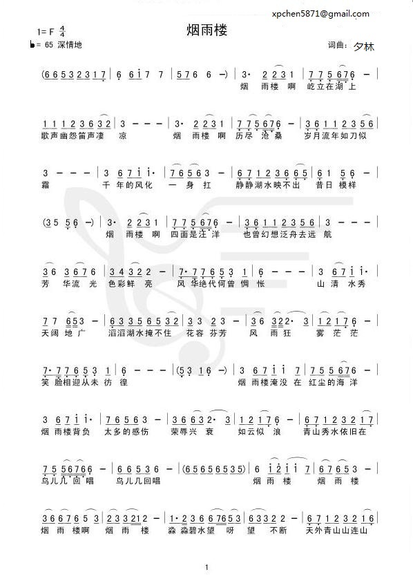 响应石头弟弟版主的建议,我把《烟雨楼》的伴奏和歌谱贴出了,欢迎各位网友演绎。我提起向各位致谢!