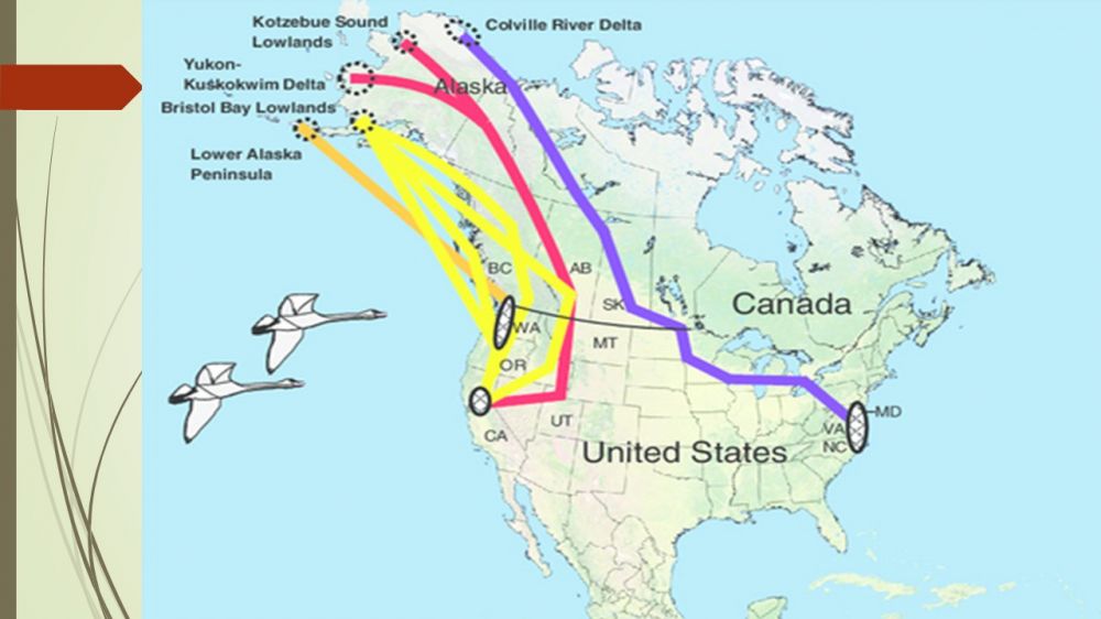 紫线是TundraSwan的迁徙路线