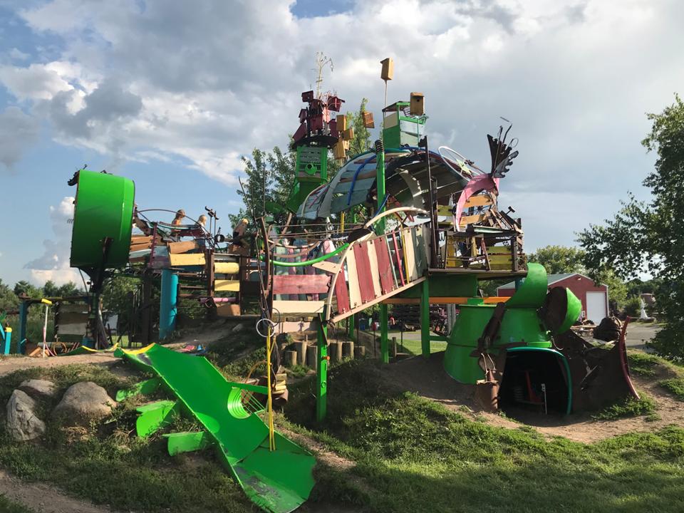 正当我们在荒郊野外上下求索时,我的目光忽然亮了。“FranconiaSculpturePark”的广告牌扑入眼帘。“停停停,玉米田里有很多的雕塑哎。”就这样,我们在一个叫Shafer的乡下,邂逅了一片占地43英亩的雕塑世界。