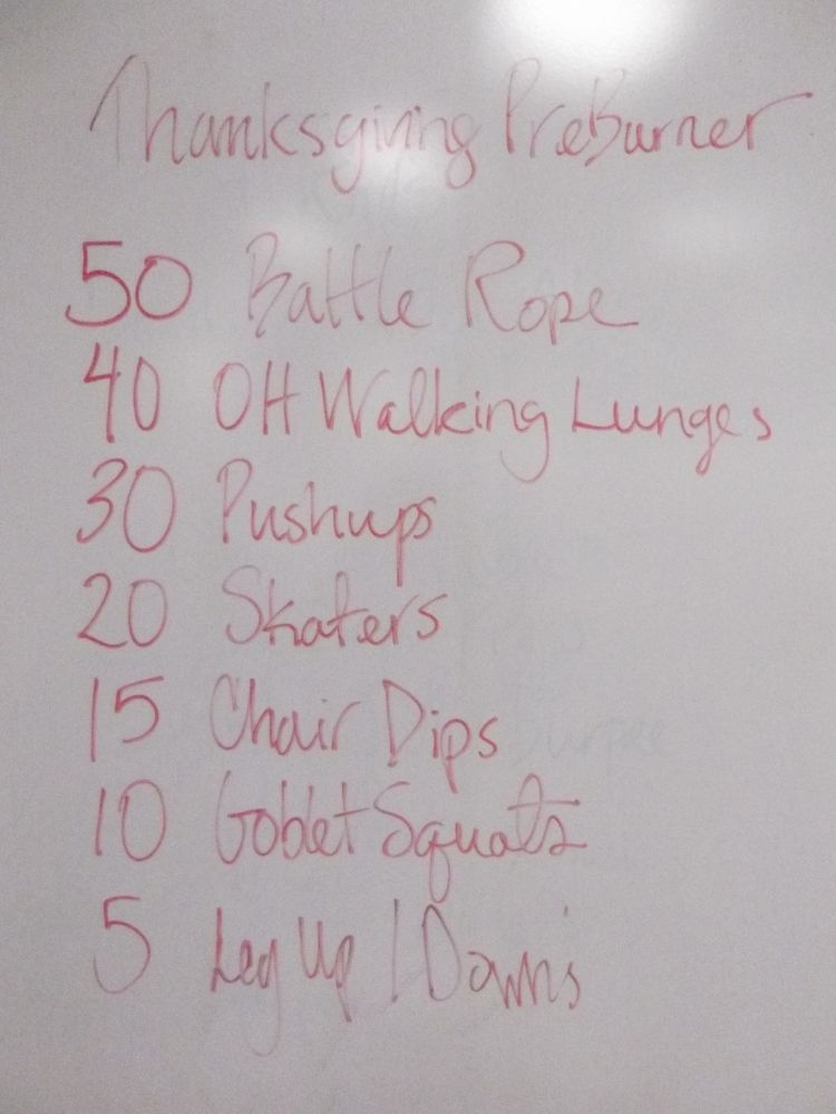 节日期间,到友人家做客,谁愿意对着美食干瞪眼,跟着主人瞎矫情?健身老师Dori特别能体谅我们的苦恼,特地设计了这样一份ThanksgivingPreBurner锻炼菜单。。。(要循环地做30分钟啊)