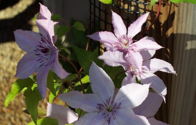 几天前的主题是那玫红的Dahlia,我便津津乐道地教大伙儿念它的与英文发音非常接近的中文名字“大丽”。今天呢?今天,Donna带来的切花是淡紫色的Clematis(铁线莲[