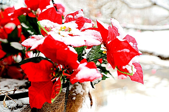 每年到了12月,商场里的人开始增多,到处都看到圣诞的装饰,节日的气氛弥漫在空气中。蒙城已经下雪了,把鲜艳的圣诞红挂在门口,火红和白雪相映衬着,格外地亮眼