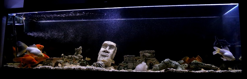 俺家有个大鱼缸,鱼儿们每天欢快地在游来游去。