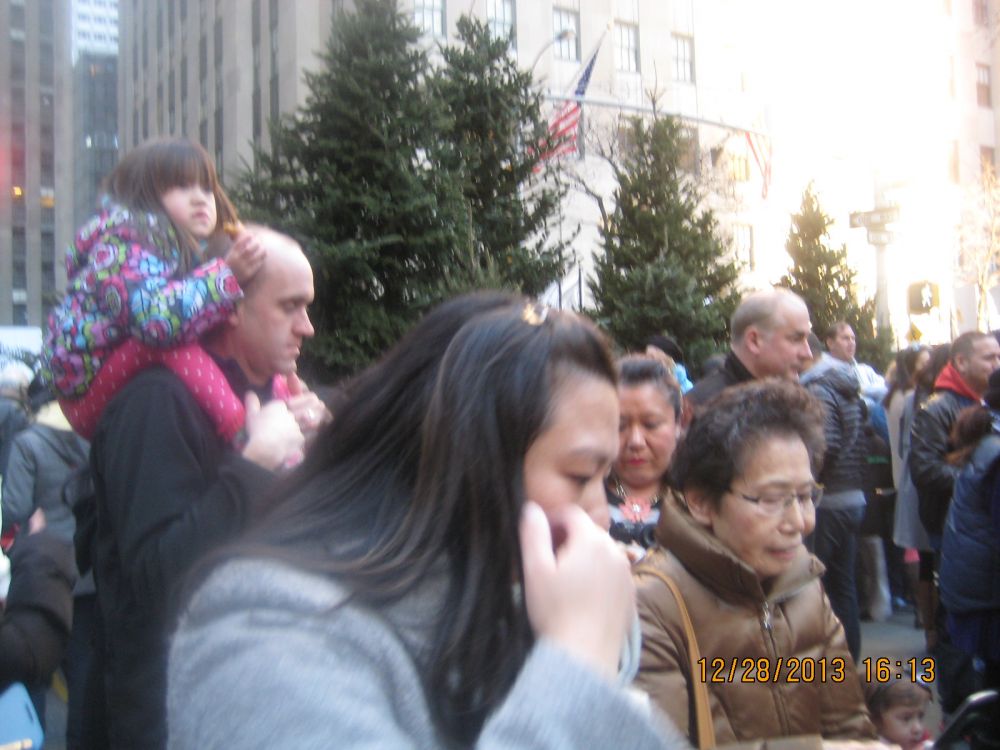 ”罗克菲洛“广场的圣诞树每年吸引国内外大批游客。母女二人是商店橱窗的忠实观赏者。