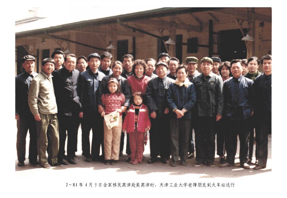 三十二年前我们全家移居美国于天津火车站台送别时与同事和朋友的合影让我陷入久久地沉思。1980年初,我的姐姐和哥哥终于通过联合国科教文组之朋友关系找到我们,我便开始申请出国与亲人团聚,但我校(天津师大)保卫处就是拖着不给办理,无奈我只好请我朋友(天津某大学保卫处处长)出面帮忙解决,当我的申请到公安区分局即刻办理后转到市局,七天后便拿到全家[