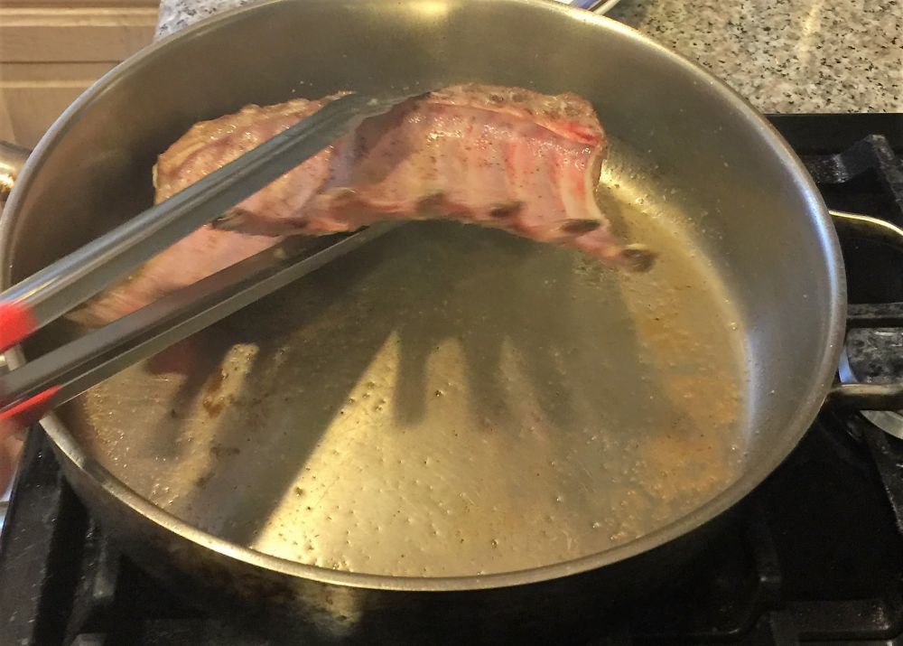 三儿做的菜三儿早就嘱咐我到costco时买一块羊排,他说他想吃烤羊排了。正巧周末party,朋友买了一大包海红没来得及做,三儿决定做两道菜给大家。我买了面包。三儿做的烤羊排:先用盐和胡椒腌一下,在平锅里两面煎一下.把酸面包,美国香菜,蒜用搅拌机打碎。在羊排上涂芥末膏。把打碎的混合料糊在羊排表面。放小烤箱里375F考35分钟。三儿做的海红:成品忘了照了,都[
