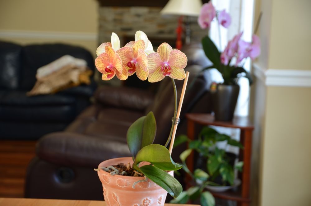 我以前也养死过几盆蝴蝶兰,都是水大了造成的,透明的盆套在没有洞的瓷盆里,浇水多了不知道也没有把多余的水倒出来,根都呕烂了。经过几年的摸索总算掌握了养蝴蝶兰的技术,现在家里有10盆兰花,8盆在开花。失败是成功之母,我这个所谓的绿手指是踏着无数植物的尸体走过来的。