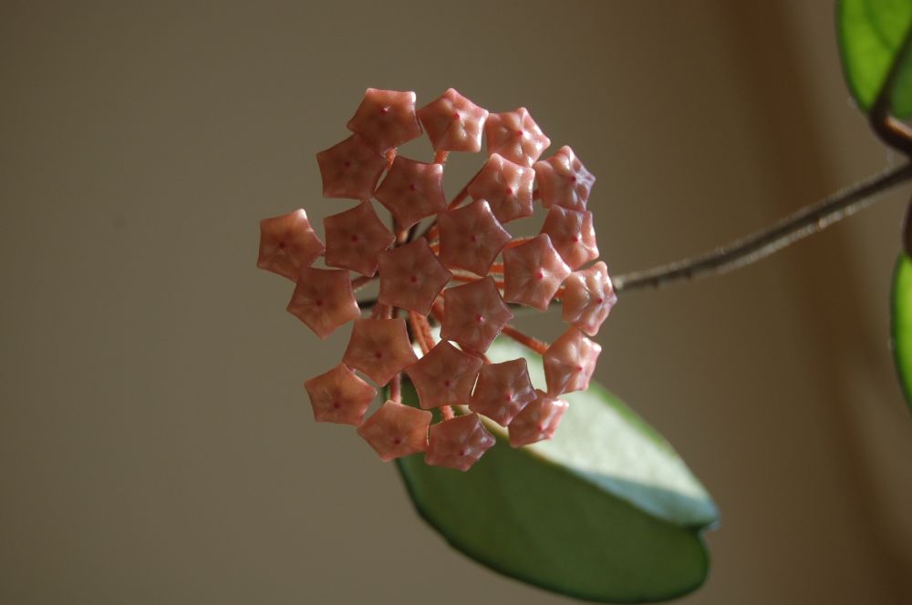 邻居老太太早就告诉我她家有球兰,但我从未见过她们开花的样子,只是深[
