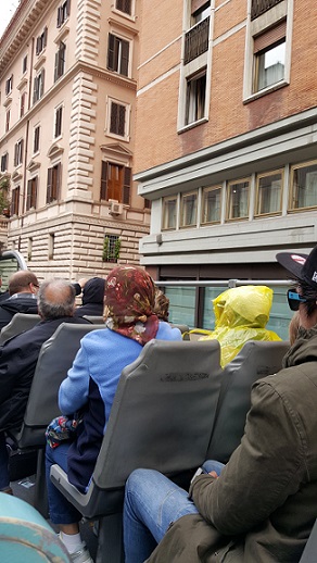我們原本的計劃裏並沒有乘坐公交這個考慮,習慣了美國大農村的生活,即使回到自己的家鄉也視公交為畏途了,擁擠的人群,複雜的線路,帶著老頭老太當然盡量想用快捷省力的交通方式。實際上,羅馬的公交才方便又便宜,反而朋友傳授的打的經驗我們一點沒用上。