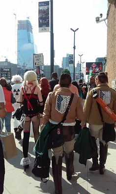 我好奇心大涨,决定去瞧瞧前面有什么热闹,立刻向右转九十度,跟着过了马路。往前只走了三条街,就看见越来越多的人涌向同一个方向。原来是纽约动漫界的年度盛会。