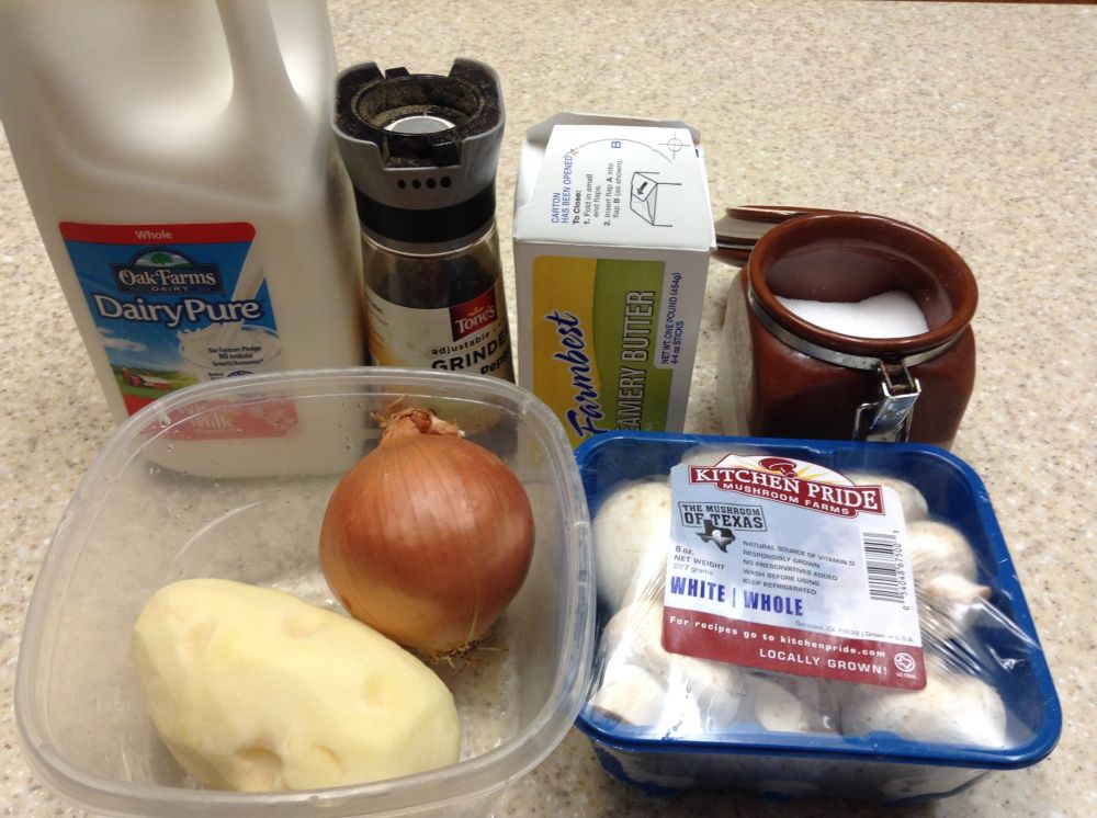 原料:元葱,蘑菇,土豆,黄油,牛奶,盐和黑胡椒