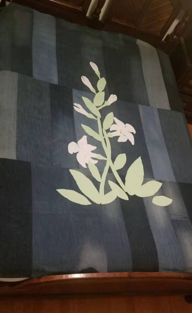 这一个最简单,裤子洗好熨平,剪出最大的长方形,然后找出差不多长度的,缝在一起。连着缝三条,就够一个床单了。LD不喜欢这种,觉得不如那个这正方形的好看。我于是又剪了一个白色牛仔短裤,一条绿裙子,拼了几朵花。可惜,床单太大,7尺乘7尺,又厚又重,我这家用小缝纫机真是不好操作。缝出来的花无比粗糙,奇丑无比。我很有可能要拆了它们,换那种一喷就能[