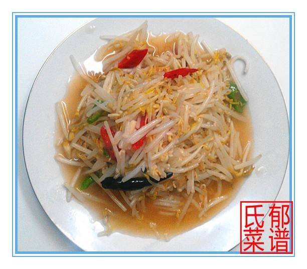 “炝炒绿豆芽”:起油锅(菜油3勺),七成油热时,将干辣椒炸至金黄色,下几粒花椒炸香,迅速倒入洗净沥干的绿豆芽(适量姜片、蒜片同时下锅)下鍋翻炒,加盐、醋、醪糟汁(比加料酒和糖更醇厚)快炒至断生起鍋。此菜特点:鲜脆中带咸、酸、辣、香。