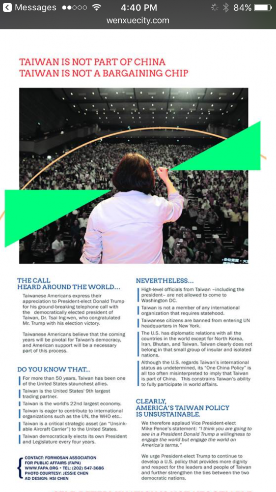 统治中国台彭金马太平岛的前中国政府负责陆委会的主任张小月强硬指出台湾的前途由追求台湾独立的台湾人民决定,一张民意牌堵死了习总的六个绝不。令笔者想起新闻界年底的两大新闻:时代周刊年度封面人物,世界上大多数领导人都榜上有名,进入候选人名单,唯独中国领导人名落孙山。美国外交杂志评选世界思想家,终身不嫁立志台湾独立运动的中国台彭金马太平岛[
