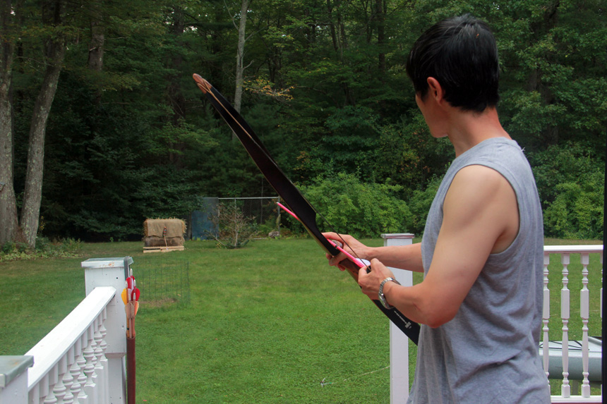 双手开弓。不要认为右势者一定要右手拉弦左手持弓。其实拉弦手用的是曲肌群,持弓手用的主要是伸肌群。只有双臂的伸屈肌群力量[