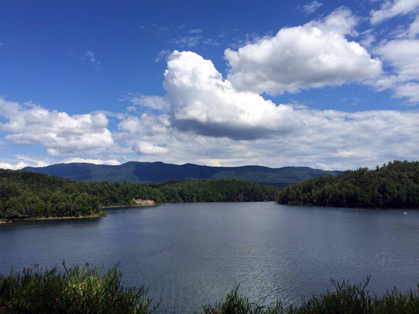 三个小时的行程来到位于Waterburytown的littleriverstatepark。这个公园在Vermont最受欢迎的statepark中名列前茅。公园的中心景观是一个水库,青山环抱,碧水粼粼。到了规定进驻的时间,我们预定好的营地上人还没走。管理人员问我们愿不愿意换到风景最好带有木棚的营地而且不增收费用。我们暗自得意,相信这样的好运气是新宝宝给我们带来的。找到营地,迫[