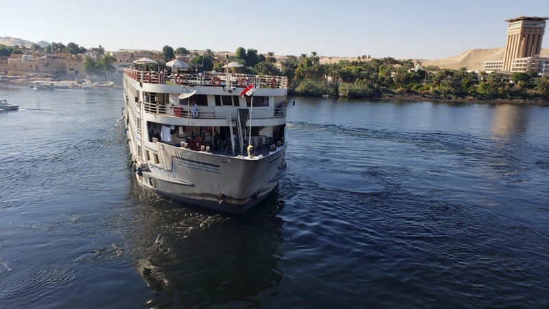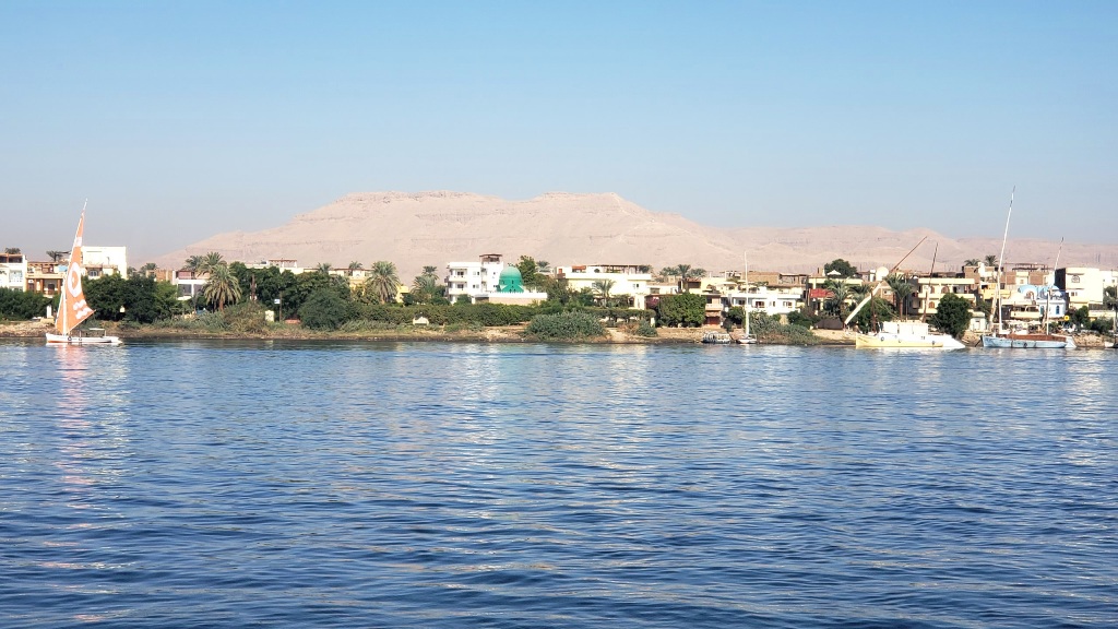 从艾得佛神庙回船后吃早餐时,河船启航了。之后一整天都在尼罗河上航行,直到日落前到达目的地卢克索。